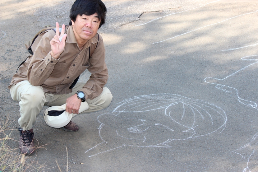道路も、キャンパスに早変わり (昔々、良くやりましたね!)